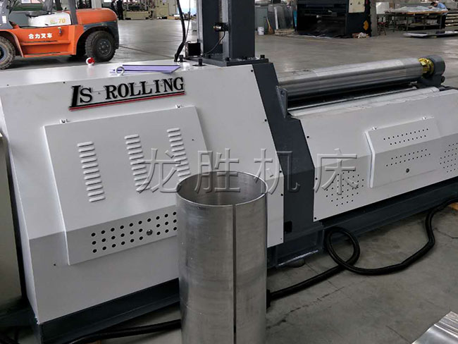 該機優(yōu)點是板材端部預(yù)彎及卷圓可以在同一臺設(shè)備上進行。